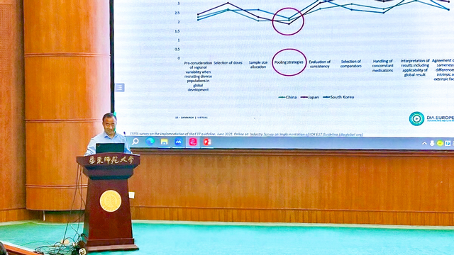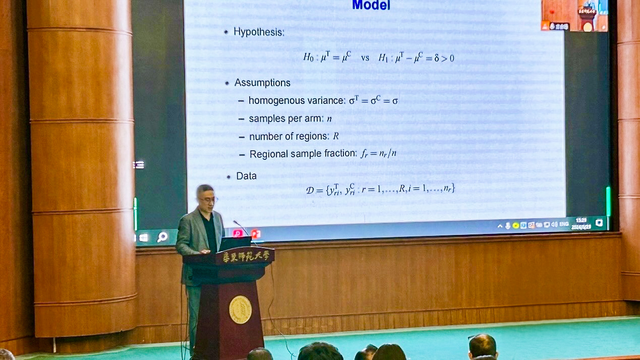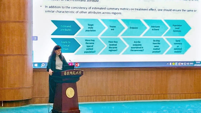 华东师范大学统计学院徐进教授作题为“Consistency Assessment and Regional Sample Size Calculation under MRCT”的报告。徐教授阐述了MRCT中一致性的评估和区域样本量的计算的方法和案例。