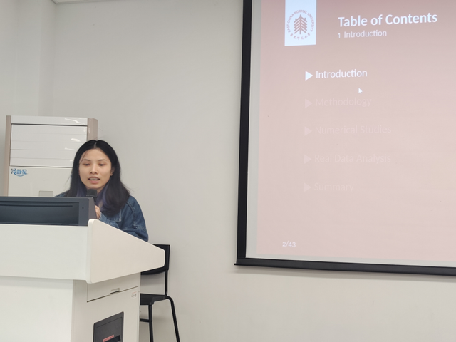 王柔琳老师在报告中深入剖析了K-样本检验的基础理论,并指出传统K-样本检验方法在处理高维、非欧几里得空间数据时面临的挑战。她创新性地提出了将复杂的K-样本检验问题转化为两个随机变量之间的独立性检验,利用随机加权技术有效解决了退化U统计量的非标准正态极限分布问题。王老师还详细阐述了随机本地化方法如何通过引入独立随机变量和正定核函数,提高统计量的计算效率,并使其在原假设下服从标准正态分布。