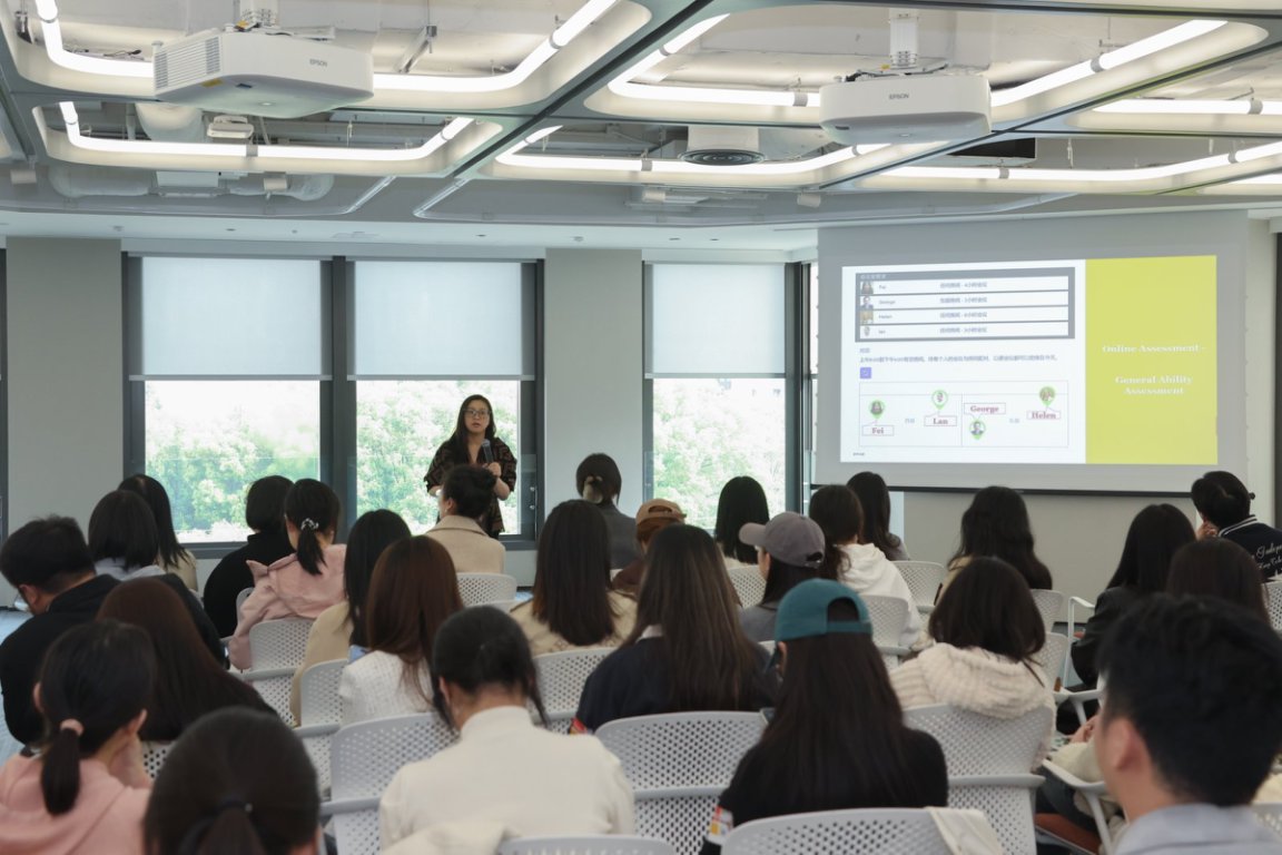 在当天的模拟体验环节中,同学们了解了普华永道的人才测评与招聘流程,以及企业对候选人的多维度评估,包括简历筛选、在线测评,以及Super Day面试的群体讨论与结构化面谈。尽管当下流行MBTI、霍兰德等各类“性格测试”,但企业更看重的是候选人的行为特质、学习能力与心理韧性。嘉宾也指出,真正决定一个人能走多远的,从来不是测评结果,而是在不断变化的环境中保持成长的能力和内在驱动力。