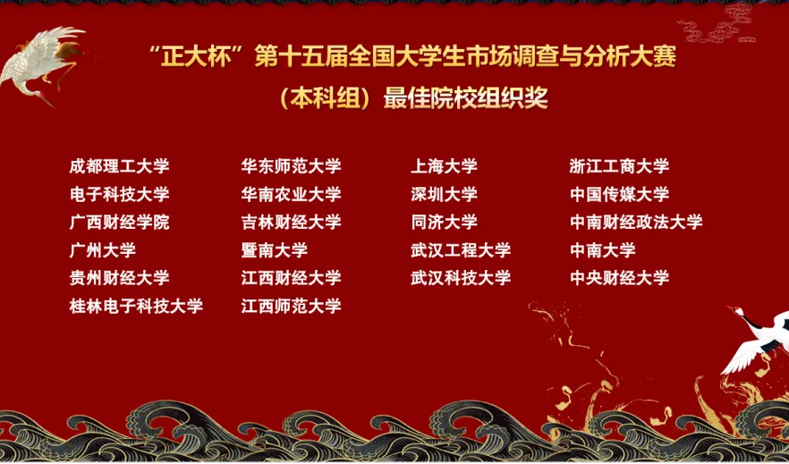 在刚刚落幕的“正大杯”第十五届全国大学生市场调查与分析大赛中,我校参赛团队表现优异,共斩获国家级奖项16项,包括全国一等奖3项(研究生组1项、本科生组2项)、二等奖1项(本科生组)、三等奖12项。学校同时荣获大赛“最佳院校组织奖”,充分体现了我校在培养学生实践创新能力方面的整体实力和组织水平。