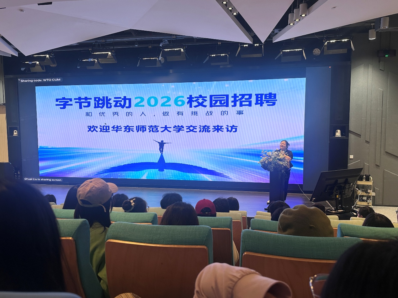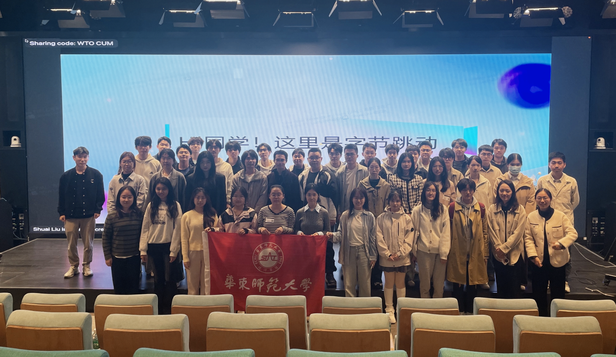 11月14日下午,华东师范大学统计学院的47名师生走进位于上海杨浦区的字节跳动抖音新江湾办公区。落地窗外是城市天际线,窗内是高速运转的内容与科技生态。这是一场真正意义上“跳出课本”的沉浸式参访,让同学们在科技企业的真实现场,与时代的技术脉搏来了一次近距离对话。这不仅是一趟企业参观,更是一场视野拓宽、理念更新、职业觉醒的旅程。