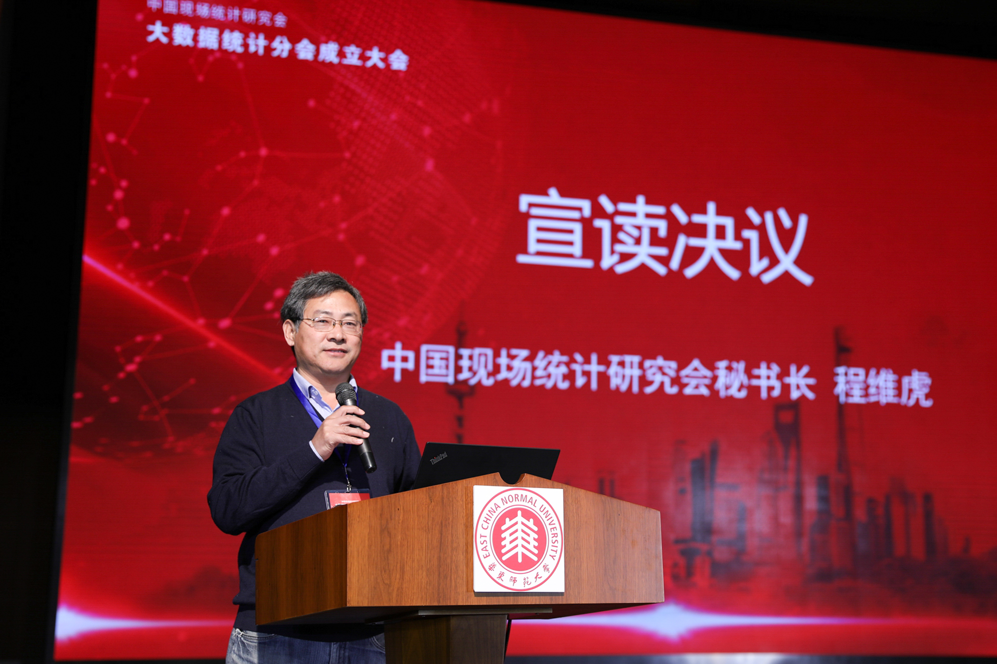 成立仪式上,中国现场统计研究会秘书长程维虎教授宣读同意成立“中国现场统计研究会大数据统计分会”的批示。