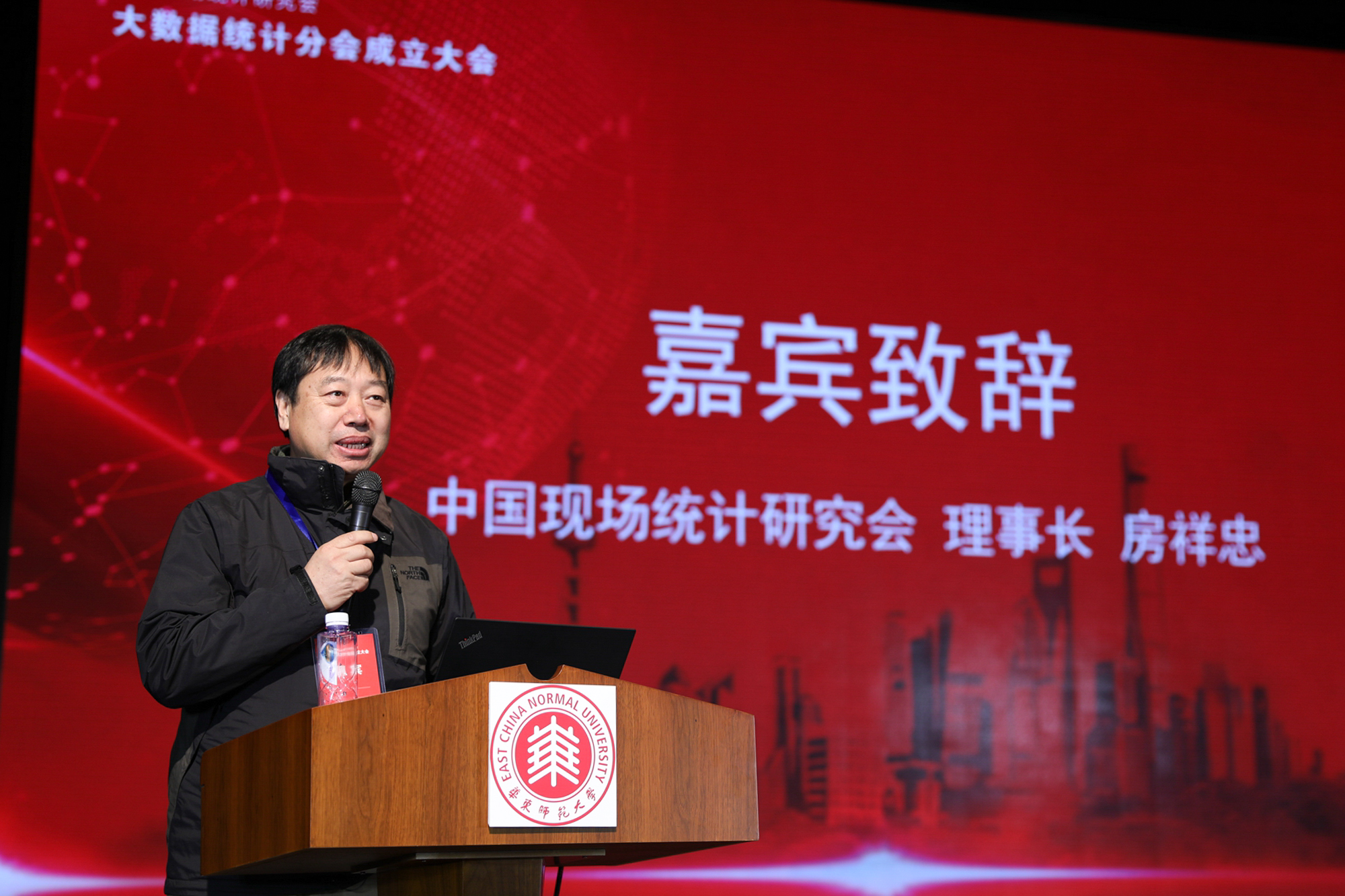 房祥忠代表中国现场统计研究会致辞。他表示大数据统计分会的成立是新形势下顺应学科发展的产物,他希望在张日权理事长的领导下,把分会办好、办强。